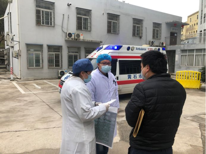 二醫(yī)院楠竹林社區(qū)康養(yǎng)中心詹文芳轉(zhuǎn)移疑似病患,正在進行交接。