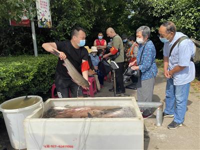 “我要一條大花鰱,還有沒有。”“有,請(qǐng)排好隊(duì)。”
