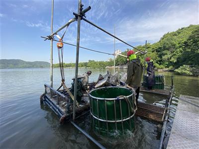 記者在現(xiàn)場(chǎng)看到,捕撈上來(lái)的魚以白鰱、花鰱為主,還有少量的鯽魚等魚類。黃德銘說(shuō),經(jīng)專家論證,磁湖目前魚類密度大,需要進(jìn)行捕撈。今年4月份,黃石市磁湖旅游開發(fā)有限公司對(duì)磁湖南湖進(jìn)行了捕撈。5月18日起,開始對(duì)磁湖北湖捕撈。