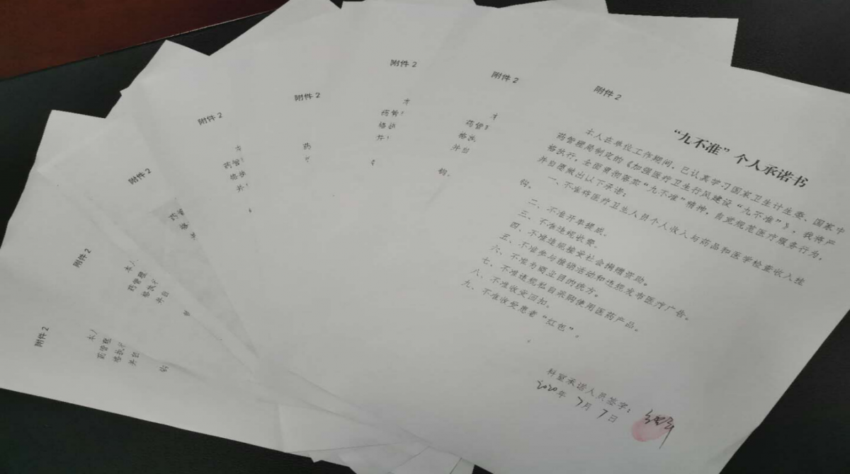 簽訂“九不準(zhǔn)”承諾書。組織醫(yī)務(wù)人員重學(xué)《加強醫(yī)療衛(wèi)生行風(fēng)建設(shè)“九不準(zhǔn)”》,簽訂“九不準(zhǔn)”個人承諾書,遏制不正之風(fēng),加強行風(fēng)建設(shè)。