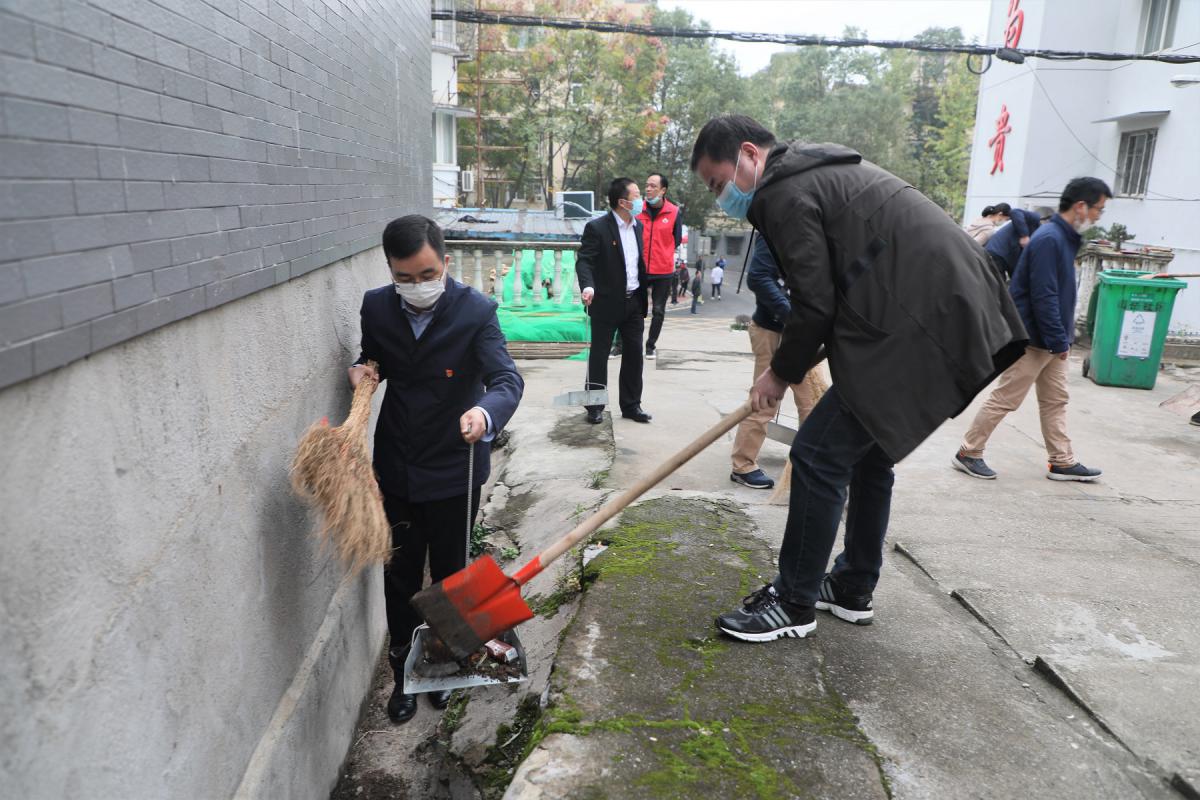 集中學(xué)習(xí)結(jié)束后,參會(huì)黨員、下沉社區(qū)工作隊(duì)員先后開展了社區(qū)衛(wèi)生環(huán)境大清掃及入戶走訪。