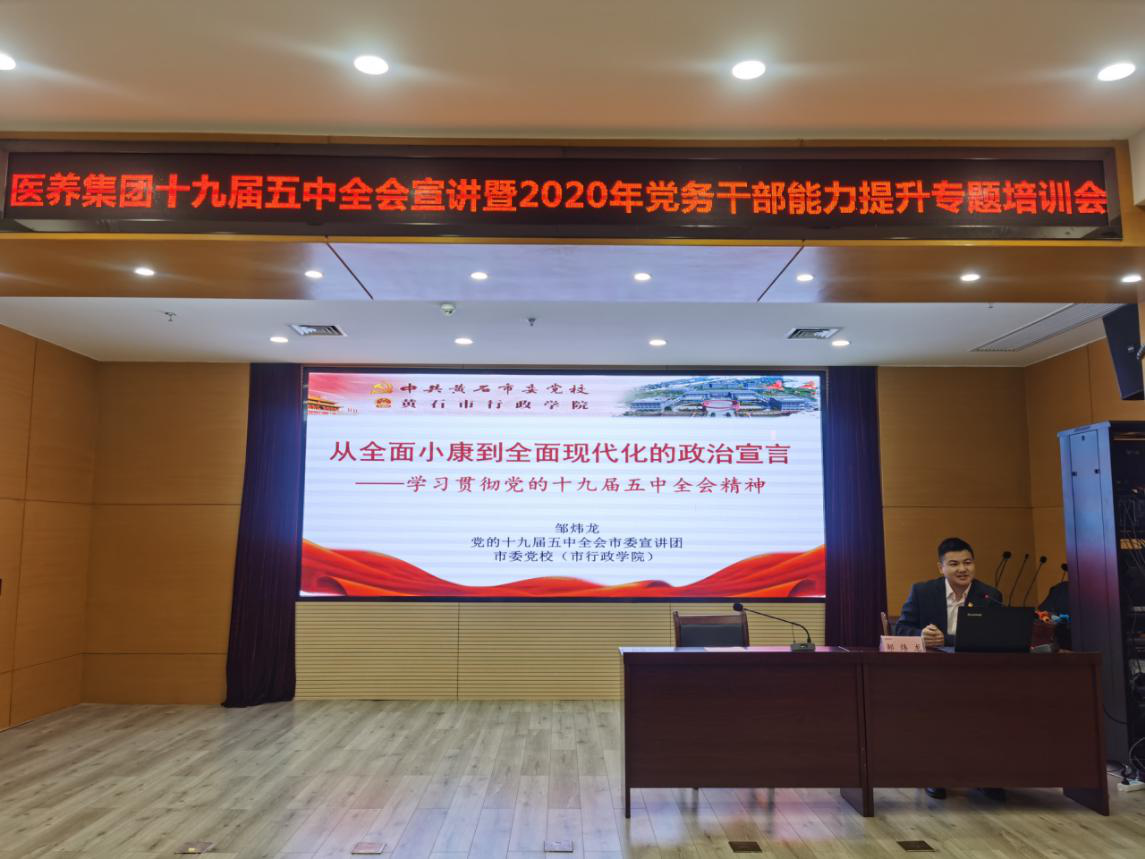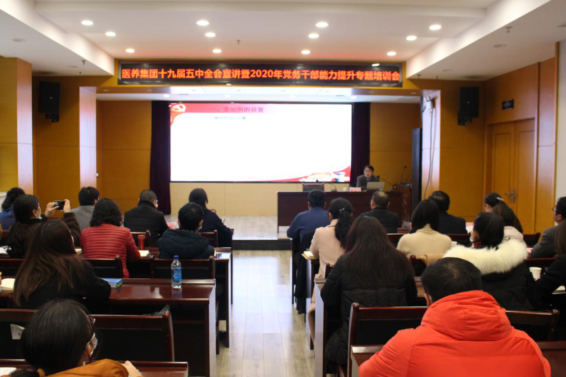為深入學(xué)習(xí)宣傳貫徹黨的十九屆五中全會(huì)精神,11月28日,醫(yī)養(yǎng)集團(tuán)組織召開十九屆五中全會(huì)精神宣講暨黨務(wù)干部能力提升專題培訓(xùn)會(huì)。醫(yī)養(yǎng)集團(tuán)領(lǐng)導(dǎo)班子及直屬單位領(lǐng)導(dǎo)班子、機(jī)關(guān)部室負(fù)責(zé)人、直屬各單位黨政辦負(fù)責(zé)人、基層支部書記、黨務(wù)干部參加培訓(xùn)。