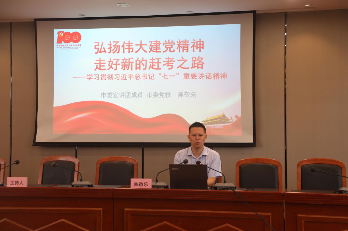 8月27日下午,城發(fā)集團舉行學習貫徹習近平總書記“七一”重要講話精神宣講會。在宣講會上,市委宣講團成員、市委黨校講師陳敬樂作了題為《發(fā)揚偉大建黨精神、走好新時代趕考路》的宣講。