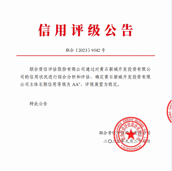 9月27日,經(jīng)國內(nèi)權(quán)威評級機(jī)構(gòu)聯(lián)合資信評估股份有限公司綜合評定,黃石新城開發(fā)投資有限公司(以下簡稱“黃石新開投”)榮獲AA+主體信用等級,評級展望為穩(wěn)定,至此,黃石城發(fā)體系成為黃石市唯一一家母子公司同時擁有AA+主體信用等級的國有企業(yè),且是湖北省內(nèi)第一個國有企業(yè)二級子公司直接獲評AA+主體評級的地級市。