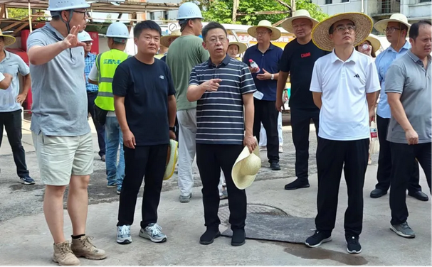 程正棟一行實(shí)地考察了華新1907文化公園東大門(mén)景觀、湖北美院協(xié)同創(chuàng)新示范基地、聯(lián)合儲(chǔ)庫(kù)、一分廠、新青年半島等重點(diǎn)項(xiàng)目,聽(tīng)取了項(xiàng)目建設(shè)進(jìn)展,詢(xún)問(wèn)了建設(shè)過(guò)程存在的難點(diǎn)、堵點(diǎn),并提出了指導(dǎo)性意見(jiàn)。