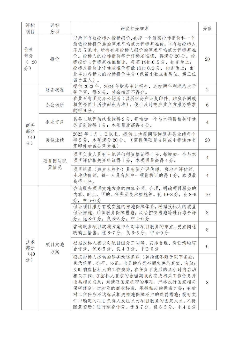 (五)服務內(nèi)容:對黃石市城發(fā)土地資產(chǎn)運營管理有限公司提供評估項目審核、項目可行性分析咨詢、資產(chǎn)價值測算、收儲地塊資產(chǎn)平衡方案、增資擴容咨詢、相關業(yè)務培訓等服務。